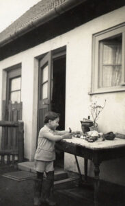 Below our house was a deep cellar and I can remember my mother storing the apples and pears in the cellar for winter use. Although my grandfather was Jewish I cannot remember him attending any Jewish religious service. My father was also Jewish but my mother was of the Lutheran faith and my sister and I were brought up also in the Lutheran faith. We were regular attendees at the church every Sunday but unfortunately because of my father’s Jewish background the whole family was classified as Jewish by the Nazi regime, even though my mother had never embraced the Jewish religion. At five years old I went to the local school. I never experienced any feeling of being an outsider. I played with the lads of my own age; they came to my house to play and I went to theirs. I may be wrong but I think we were the only Jewish family in the town and no one appeared to bother.